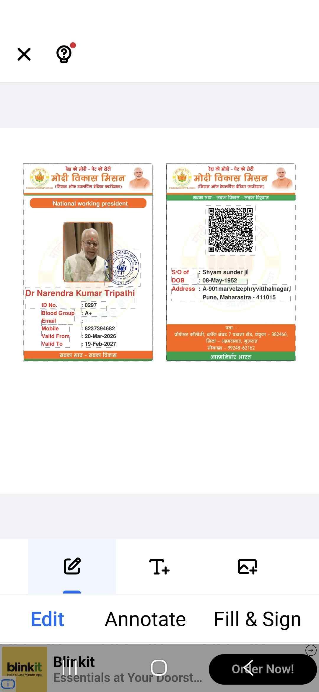 Sanatani dr. Narendra Kumar Tripathi ji ki niyukti modi Vikash mission ke national working president ke pad par hui.